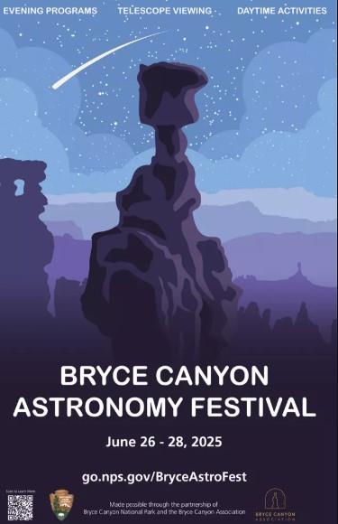 There’s no place quite like Bryce Canyon by day, and no time like a new moon in June to enjoy it by night. Astronomy festivals feature family-friendly daytime activities and special evening programs, telescope viewing, and constellation tours.The 2025 Bryce Canyon Astronomy Festival is scheduled for Thursday, June 26, Friday, June 27, and Saturday, June 28th, 2025.As always, attending the festival is free with park admission. Some events require advance sign-up. Evening programs have tickets available same-day at 8 a.m. the Visitor Center. There is no advance sign-up. Other programs, such as the astrophotography workshop, can be signed up for in advance. Most other programs, including nightly telescope viewing, are open to the public.Visit our Ranger Program page for more information on our regularly-offered ranger programs.