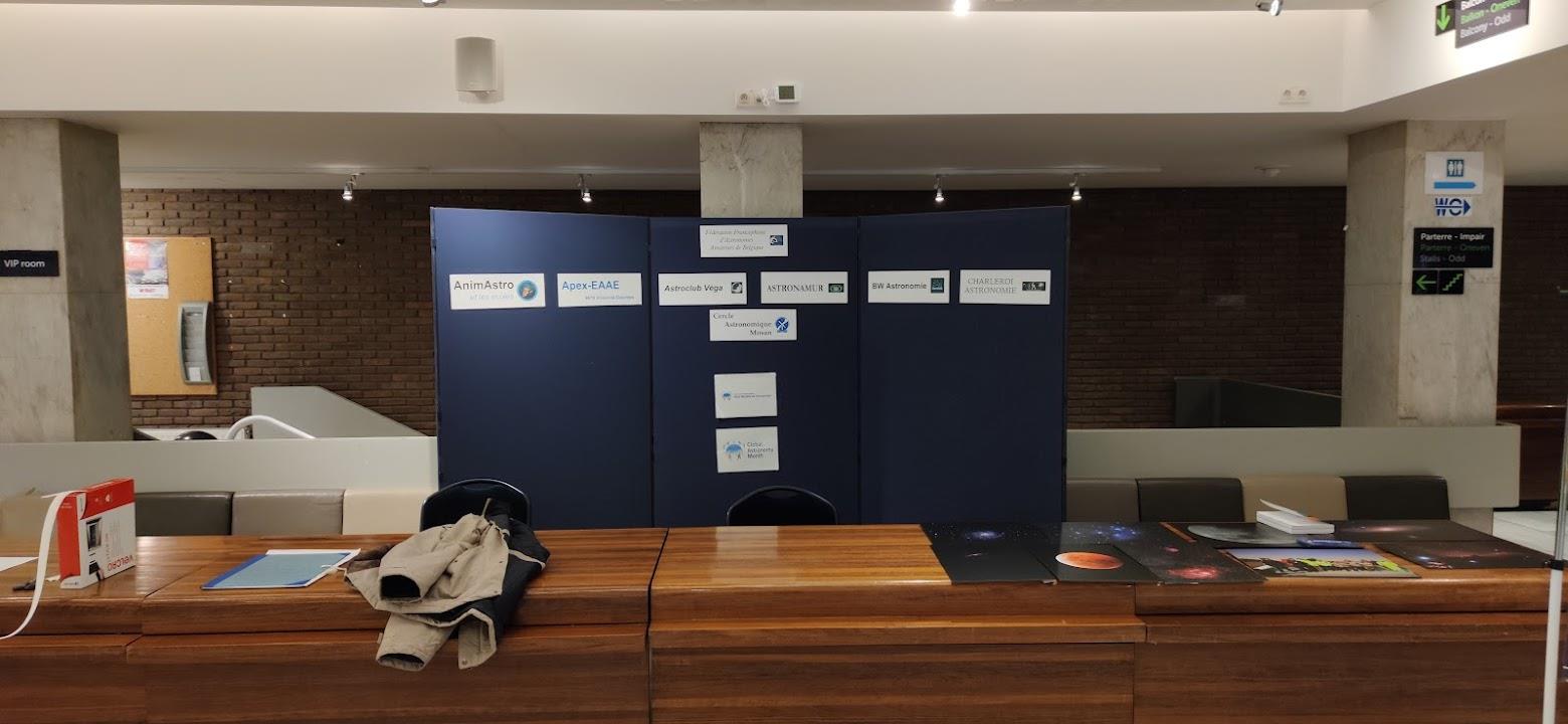 There were conferences, exposure of astronomy pictures from members of our clubs and also pantings from 3 members of the organizing club (Jacques, Pierre and Clara). Conferences were also given by professionnal astronomers or astrophysicists (like Yaël Nazé, Gaël Cessateur and Véronque Dehant).