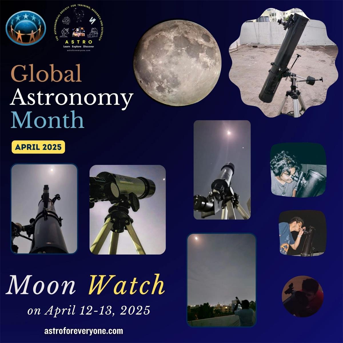 As part of GAM-2025, we had the pleasure of hosting a moon watch event from April 12th to 13th. It was wonderful to see participants gazing at the Moon and exploring its captivating surface features. We engaged with the participants, sharing insights and discussing the Moon's origin, its fascinating cratered surface, the mysterious far side, and various space missions.