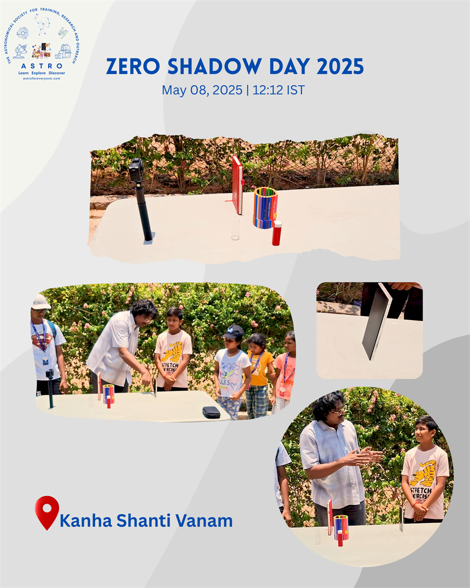 Zero Shadow Day 2025 Outreach Event at Kanha Shanti Vanam, Shamshabad. I demonstrated the phenomenon of Zero Shadow and spoke about its significance!
