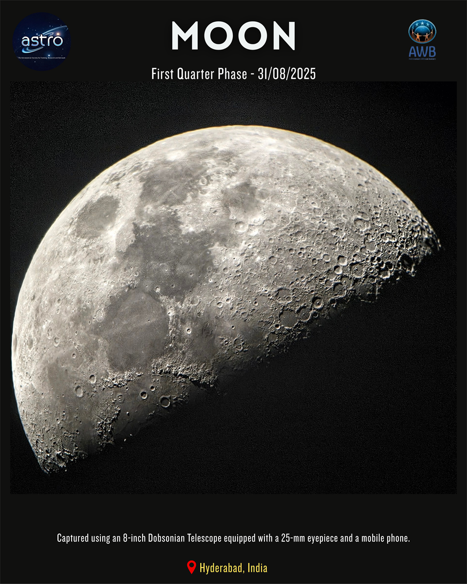 Captured using an 8-inch Dobsonian Telescope equipped with a 25-mm eyepiece and a mobile phone.
