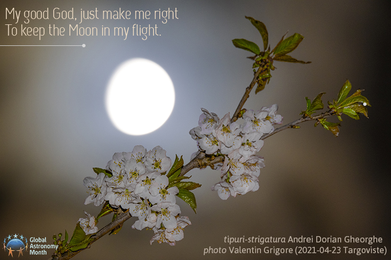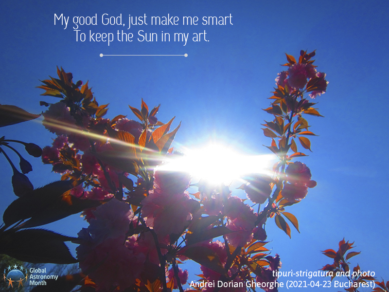 Simply said, Global Astronomy Month 2021 accompanied by the shortest Romanian poetic form (tipuritura, or strigatura, or tipuri-strigatura).