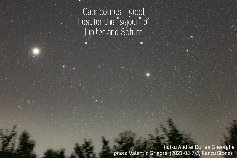 Jupiter (left) and Saturn (center) at high brightness (Saturn’s opposition on August 2, 2021, and Jupiter’s opposition on August 20, 2021).